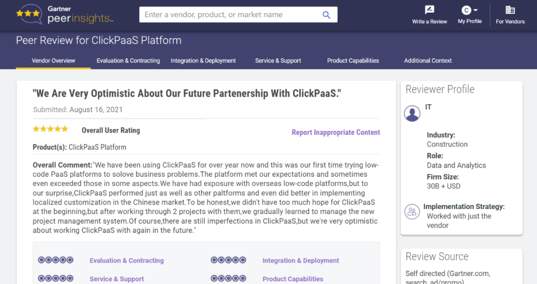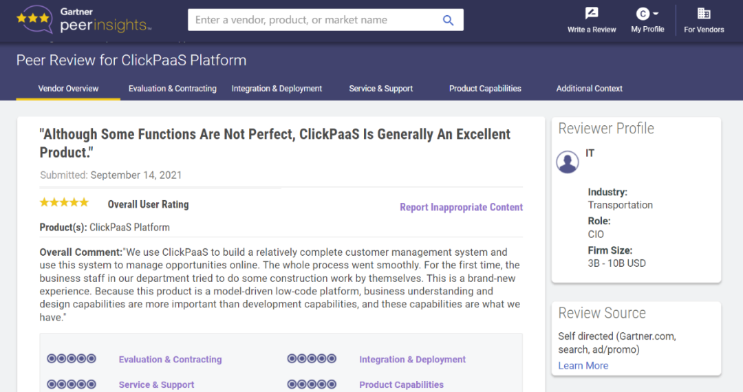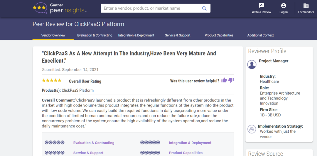 Tips::::【Peer Insights】——用户对企业IT产品和服务发布真实评价的平台。。目前已有355个市场,,,,255,000条经过验证的评价。。。每一条评价Gartner会针对参评企业营收规模及参评人员信息做验证、、、、评价内容做多维核实。。